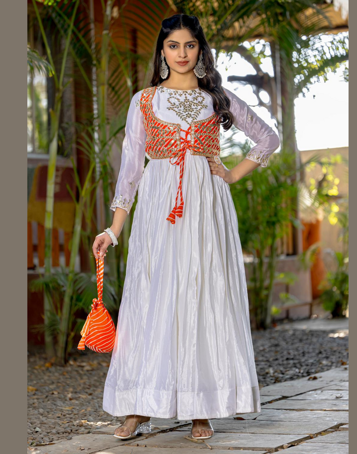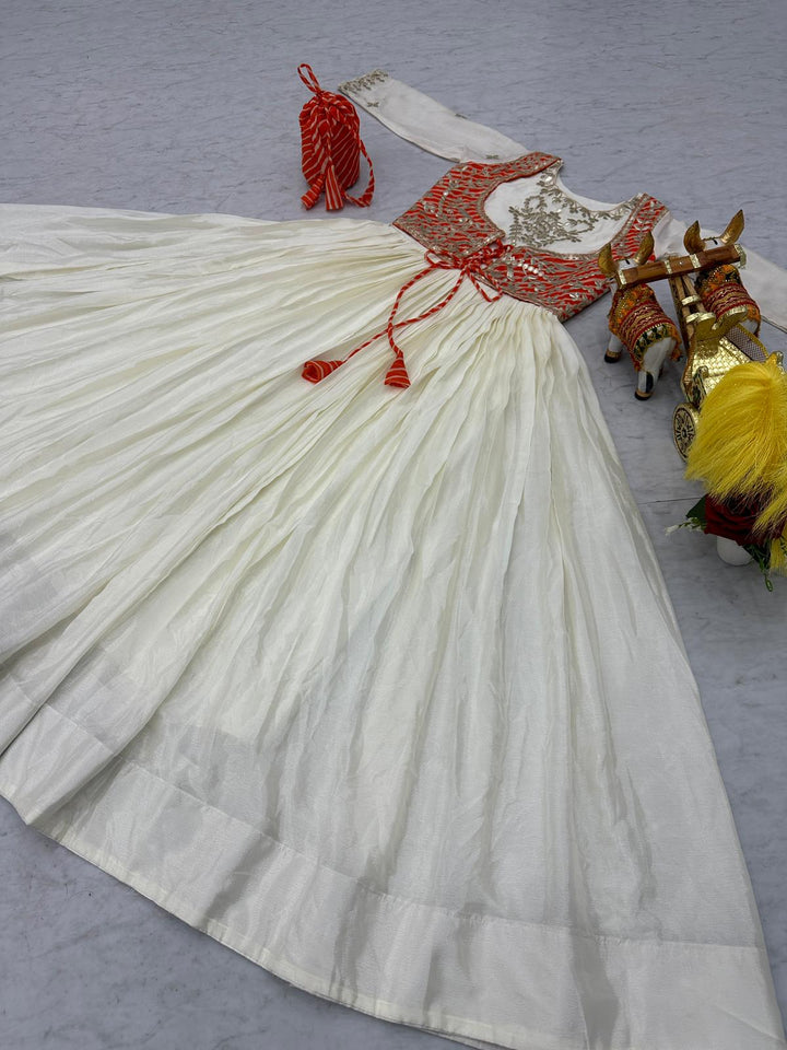 Navratri Wear Laheriya Printed Pure Chinon Long Gown