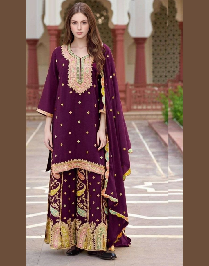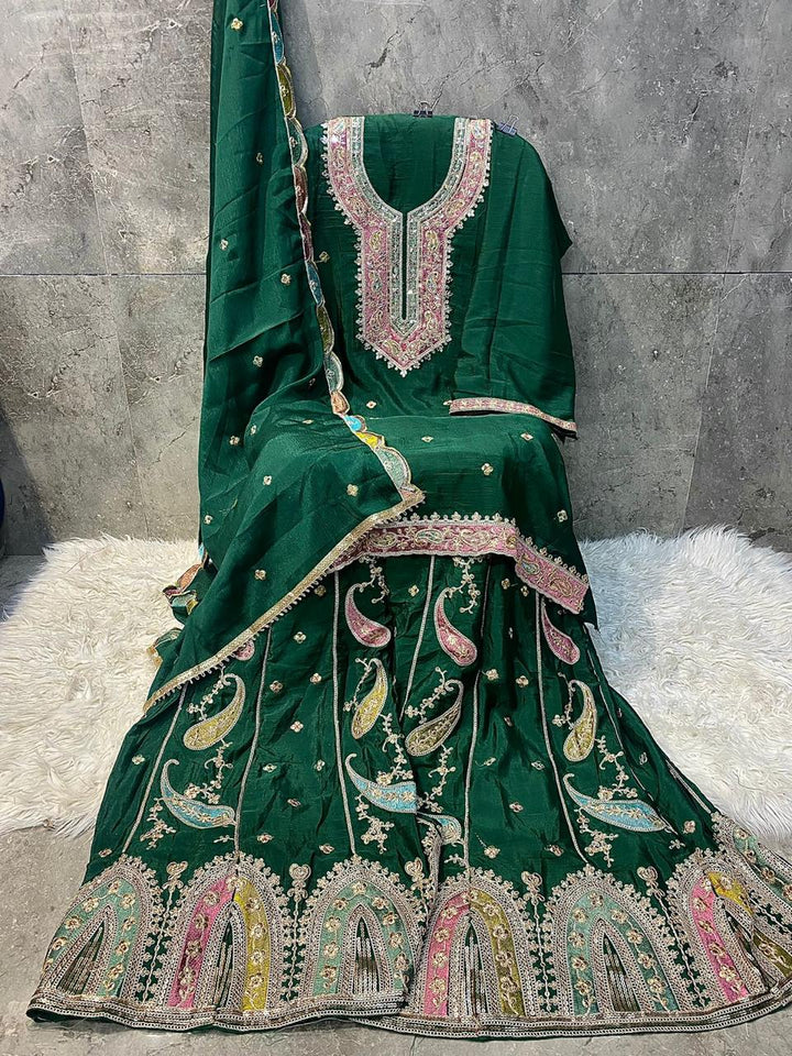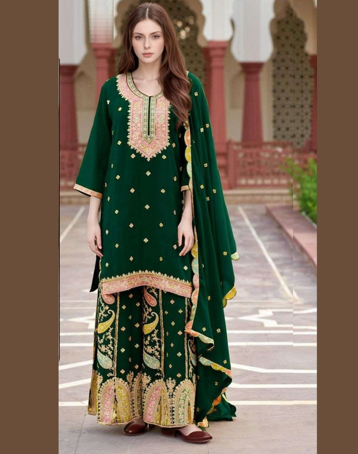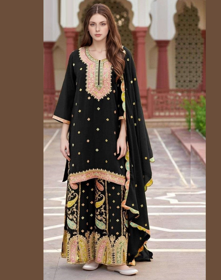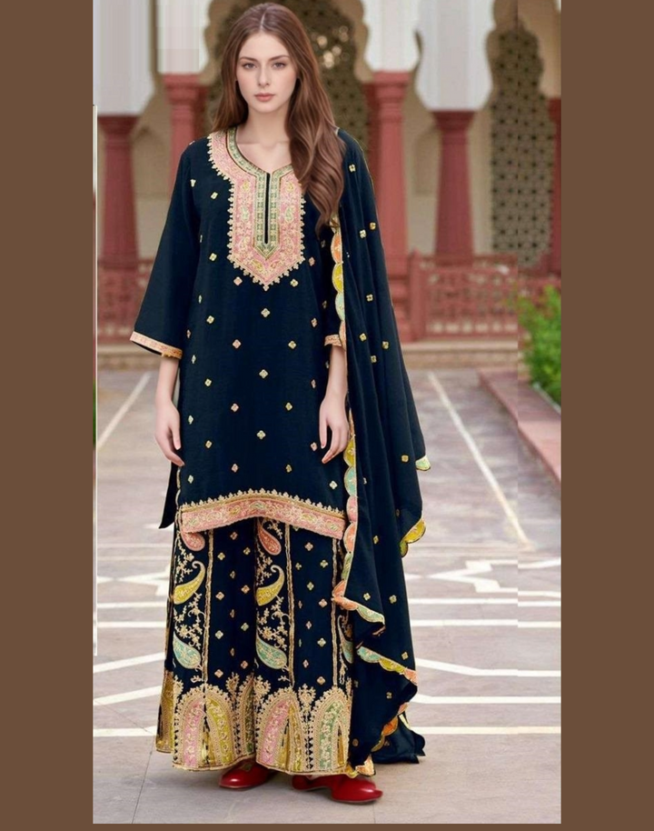 Woman’s Heavy Chinon Pakistani Style Straight Salwar Kameez