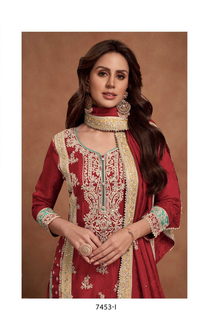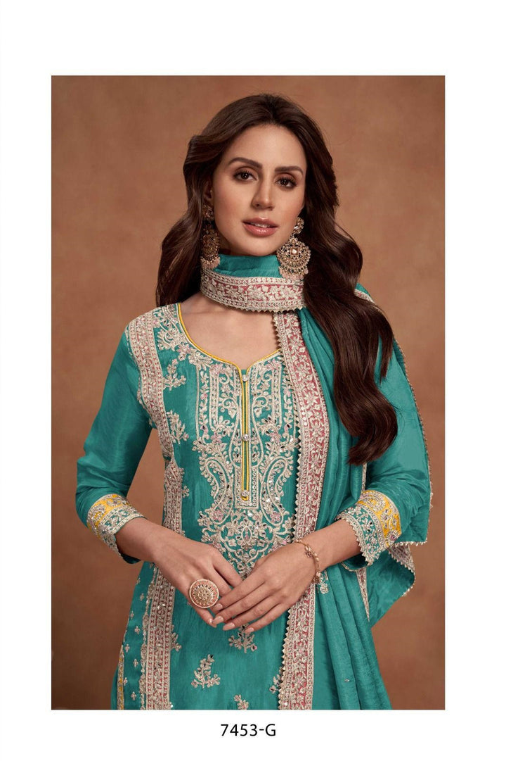 Indian Women Real Simar Silk Wedding Wear Sharara Suit