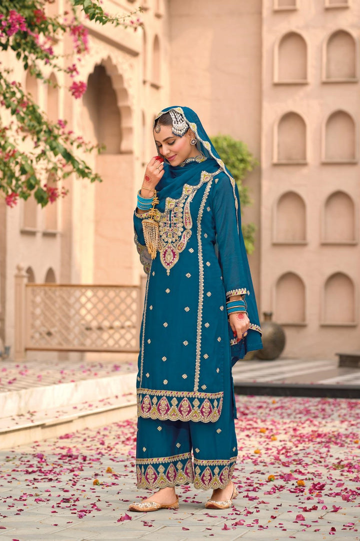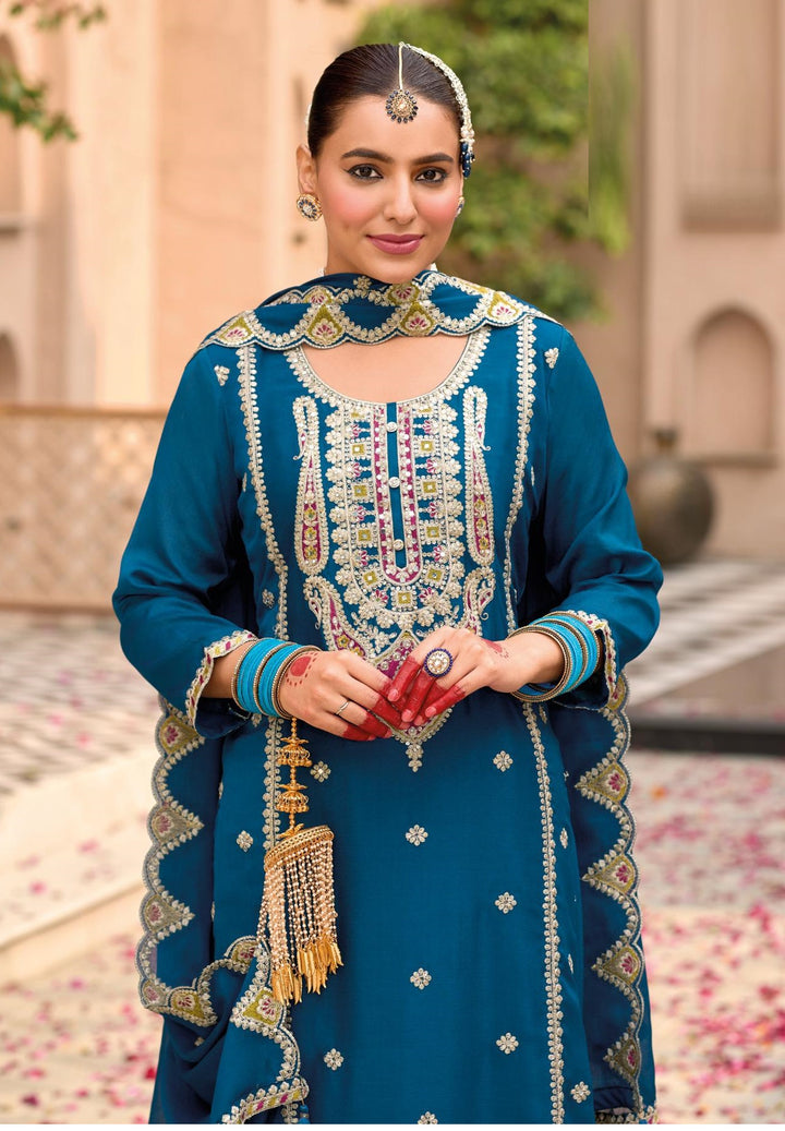 Eid festival Embroidery Designer Chinon Sharara Suit