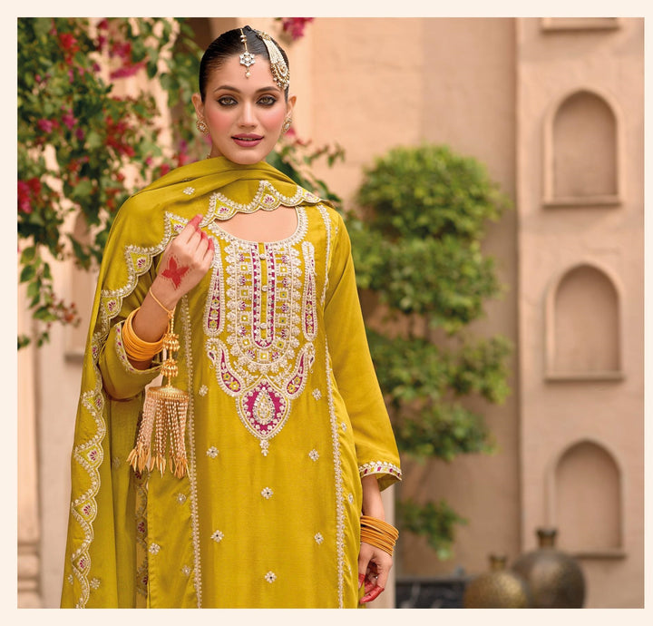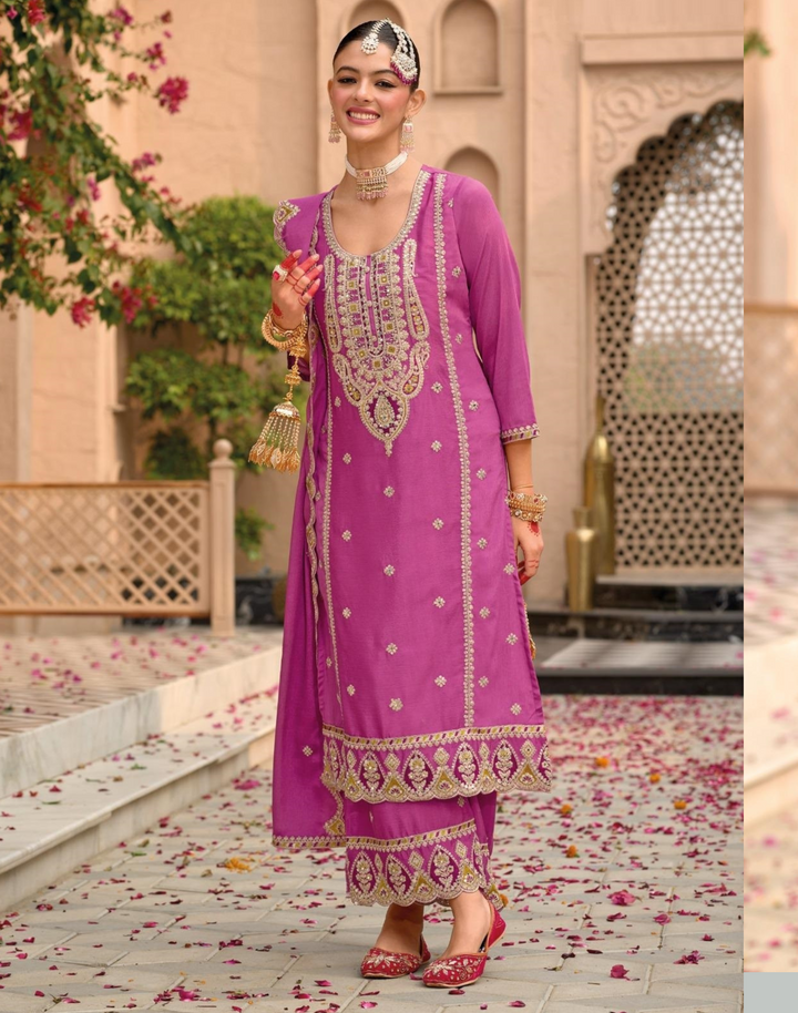 Elevate your festive look with our exquisite Mirror Work Chinon Bandhani Printed Palazzo Suit. Handcrafted elegance meets contemporary style, perfect for cultural celebrations. Shop now for authentic Indian fashion!”Step into the spotlight with our stunning new collection! Each piece tells a story of love and devotion. Let’s make this Karva Chauth unforgettable with Vinay Fashion!