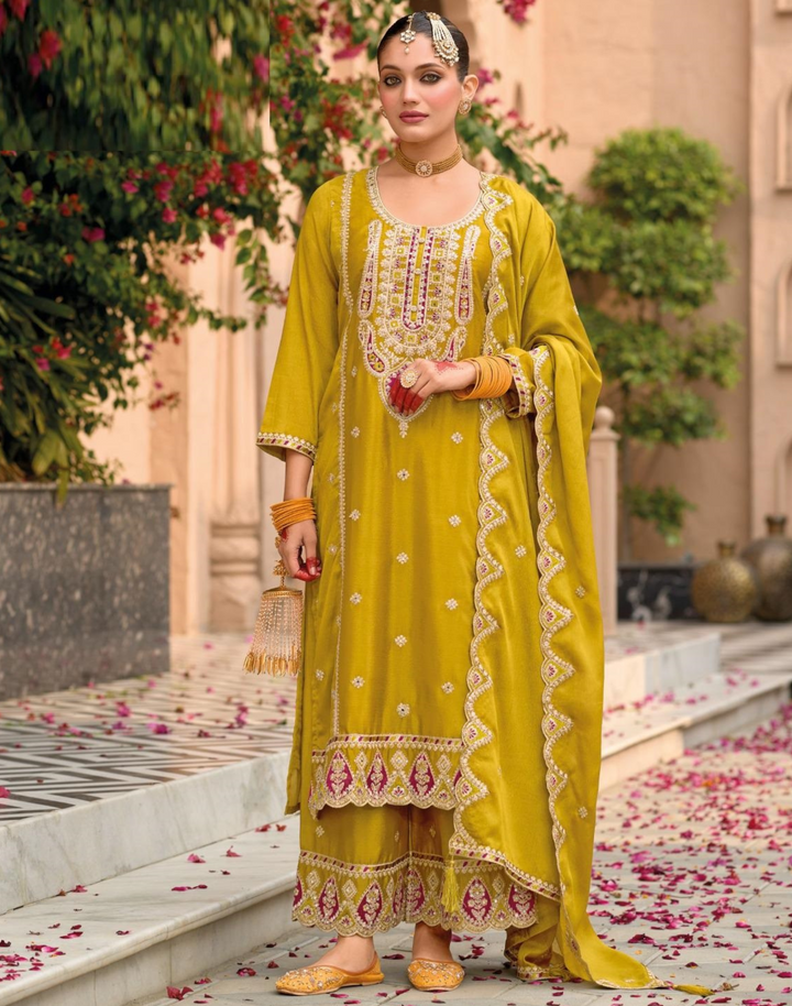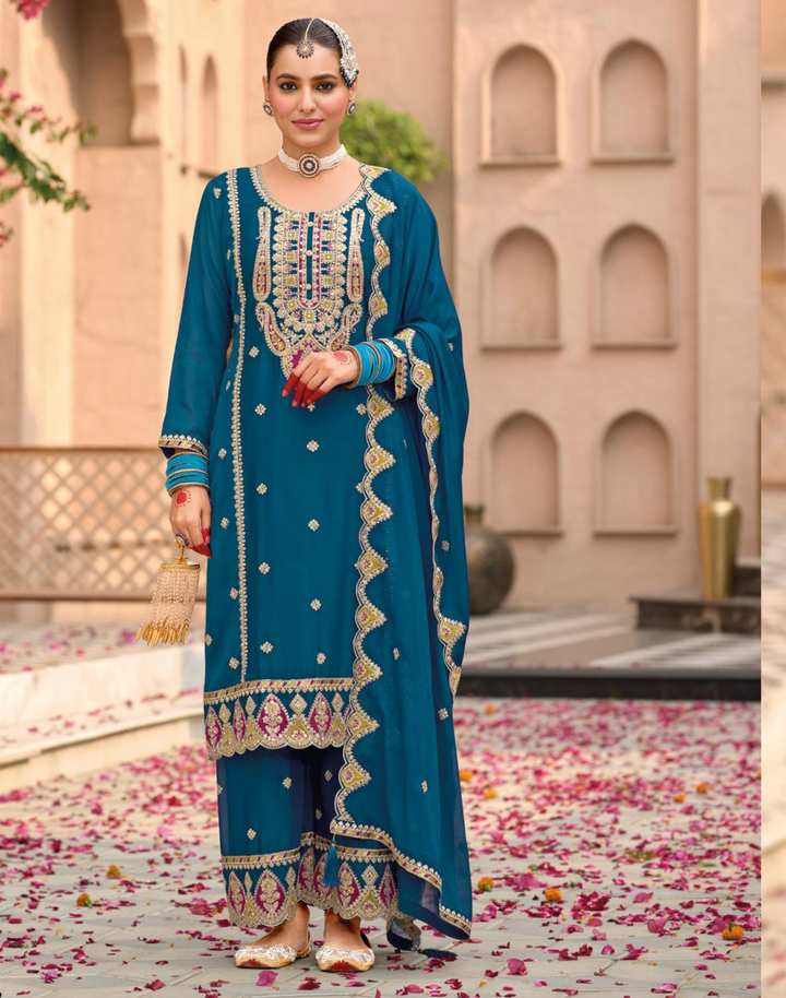 MATERIAL :Kameez :Real Chinon | Plazzo : Real Chinon |Dupatta : Real Chinon