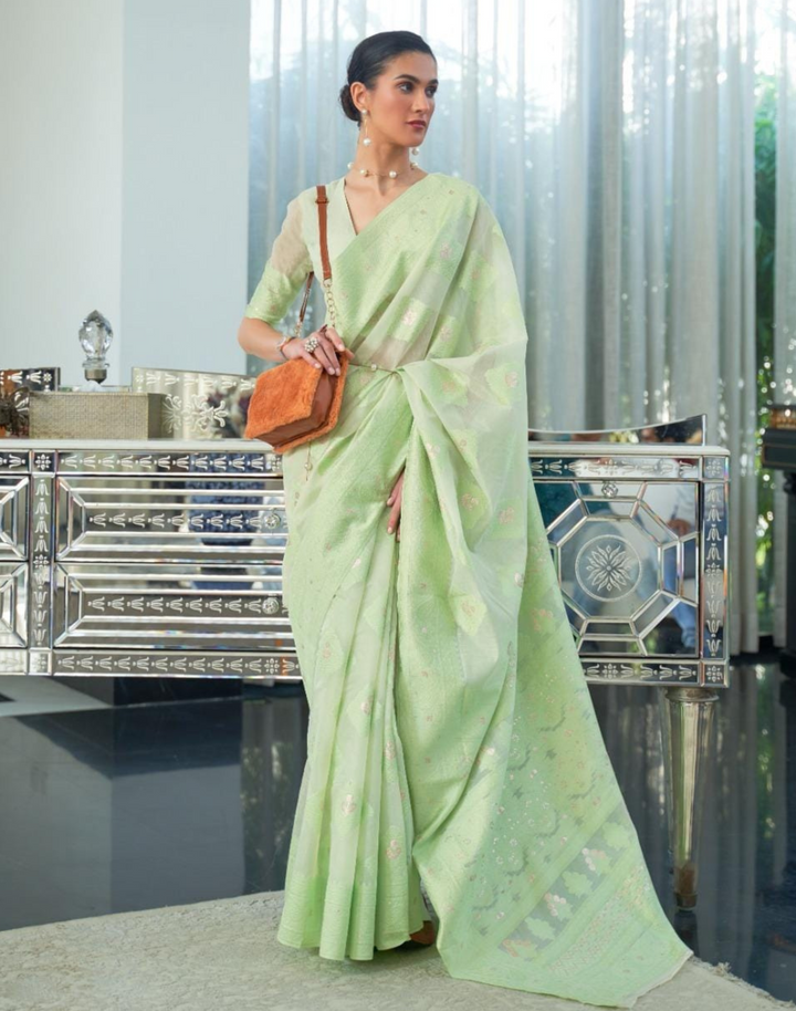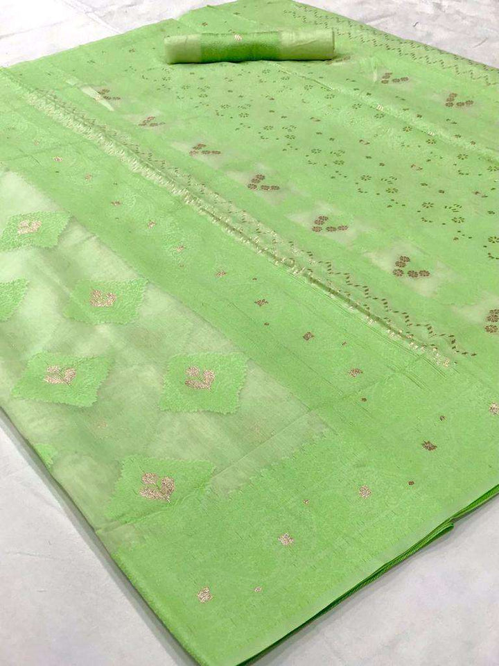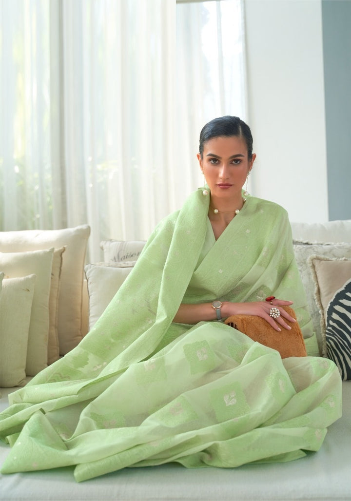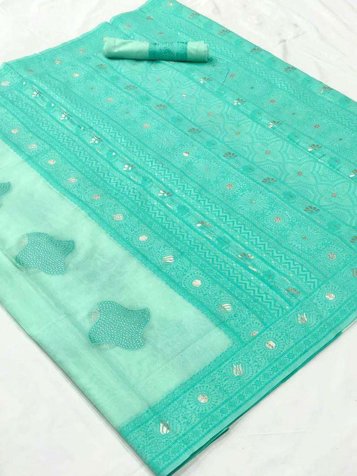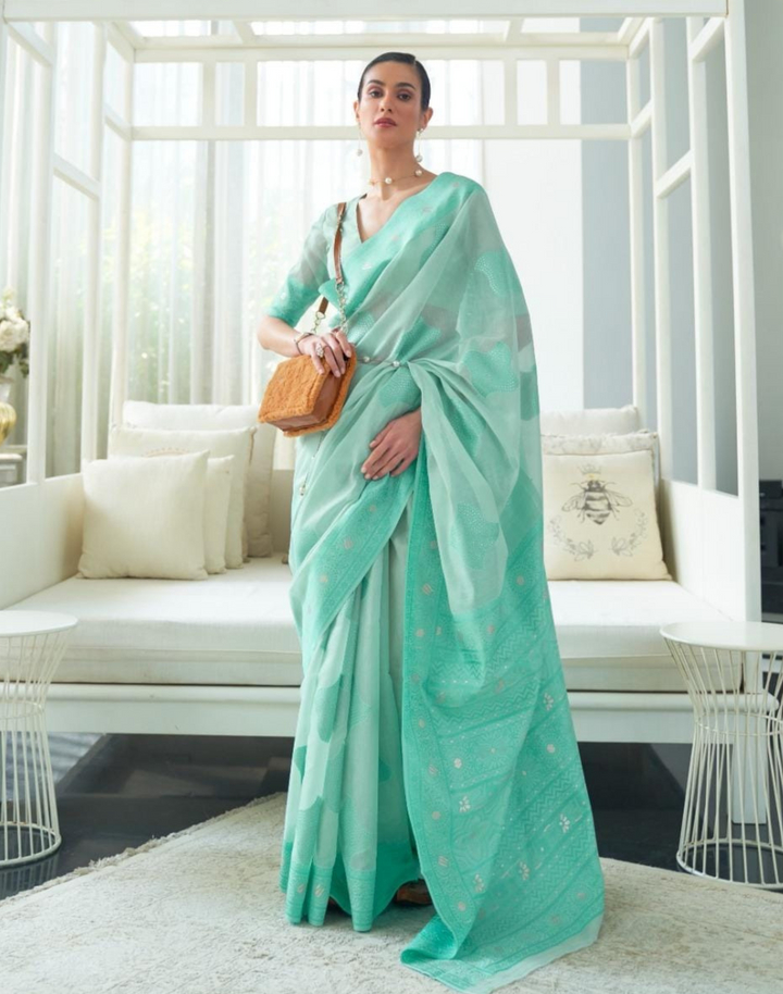 Green Office Wear Chikankari Lucknowi Weaving Saree