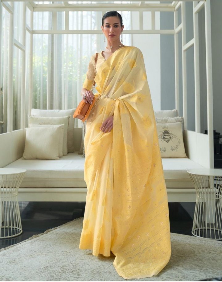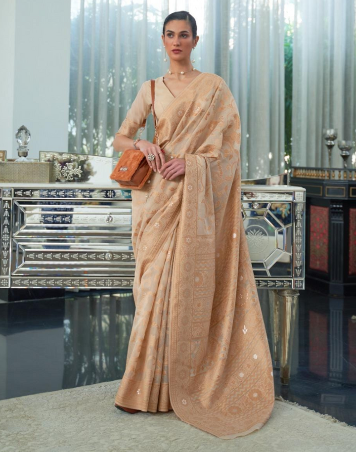 FABRIC: SAREE :CHICKANKARI LUCKNOWI WEAVING |BLOUSE : CHICKANKARI LUCKNOWI WEAVING |WORK : Enhanced With CHICKANKARI LUCKNOWI WEAVING