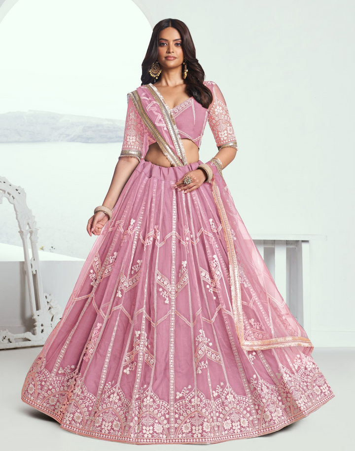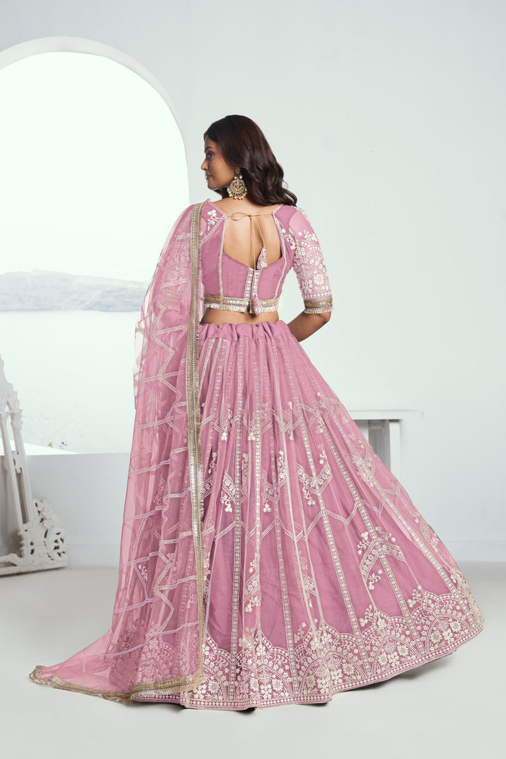 Pink Butterfly Net Party Wear Zari work Lehenga Choli