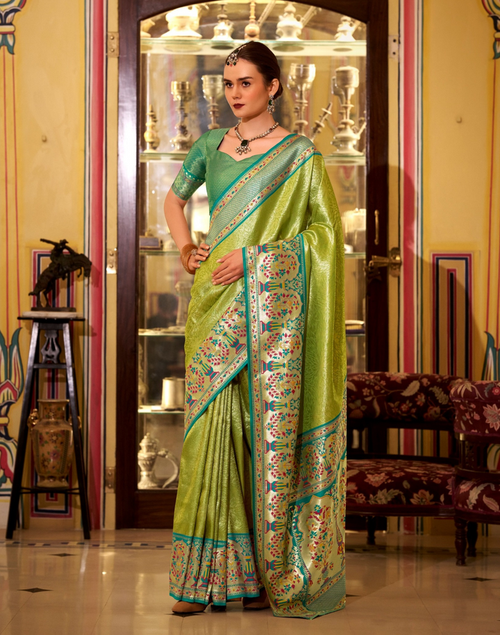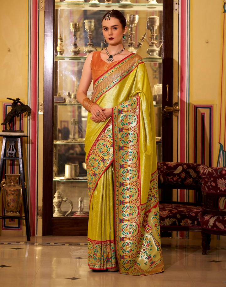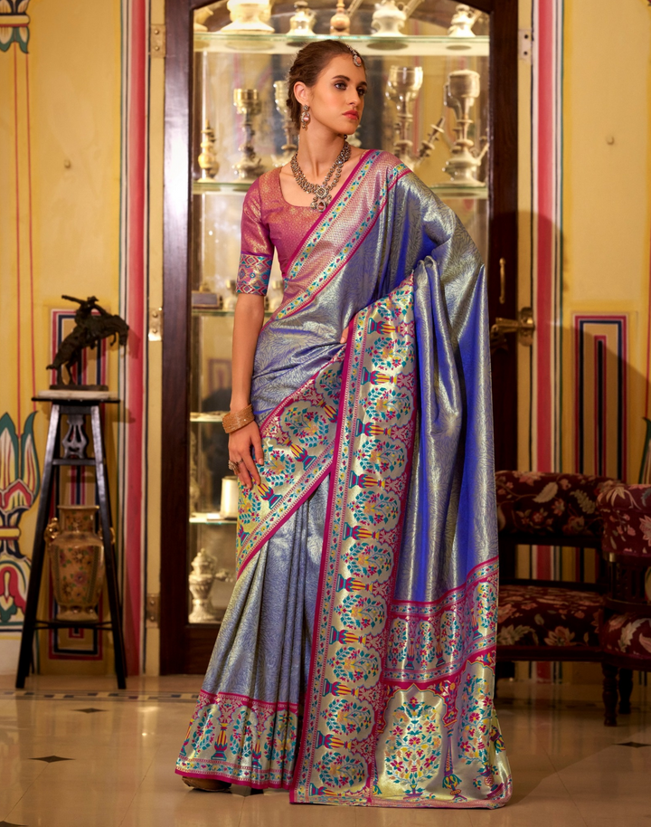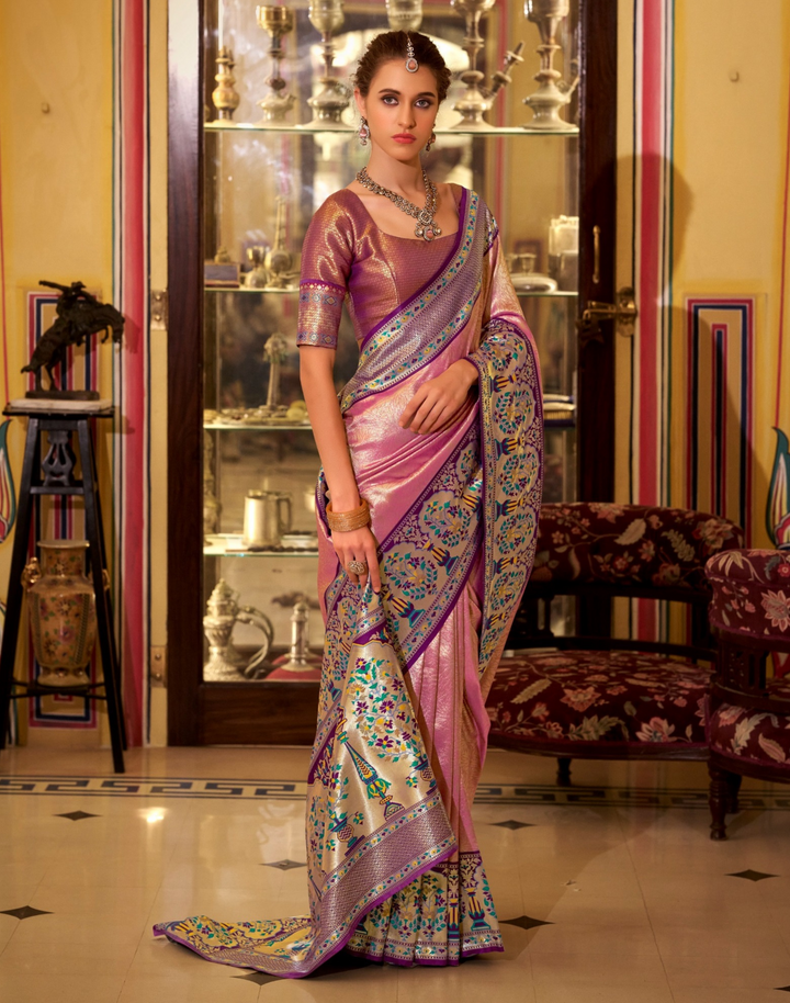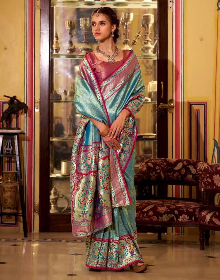 Work : This Saree Is Embellished With Paithani Woven Work Border And Pallu