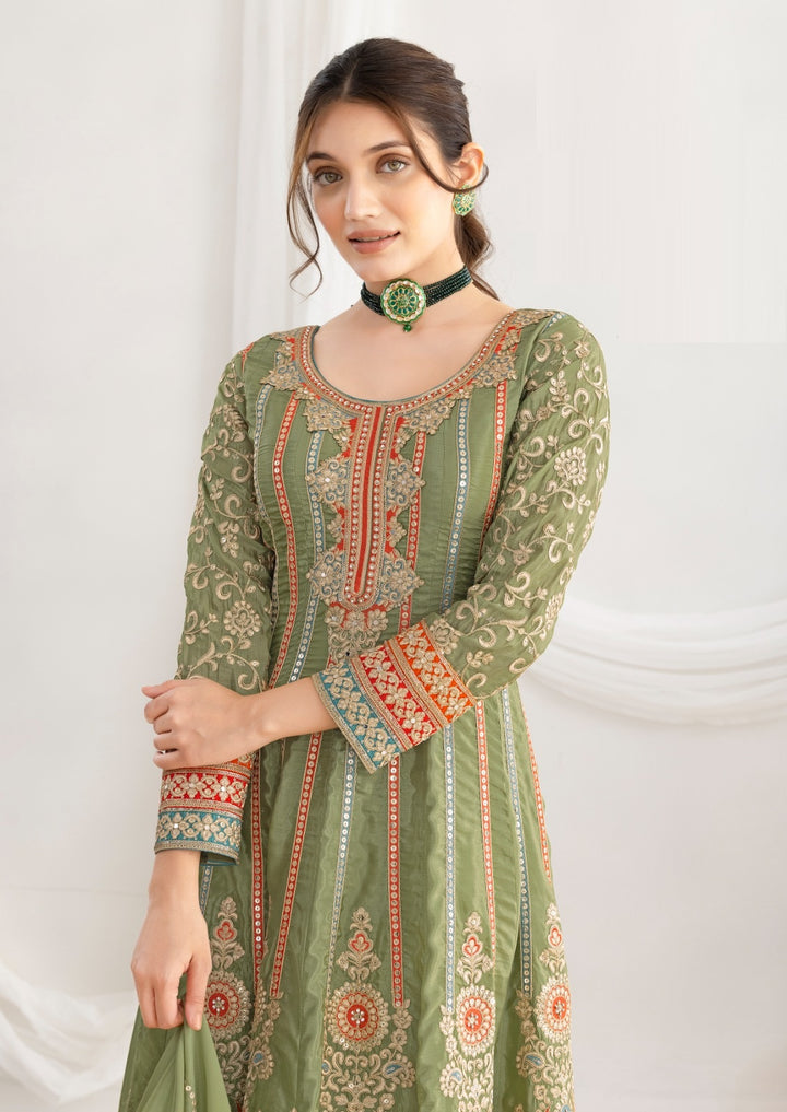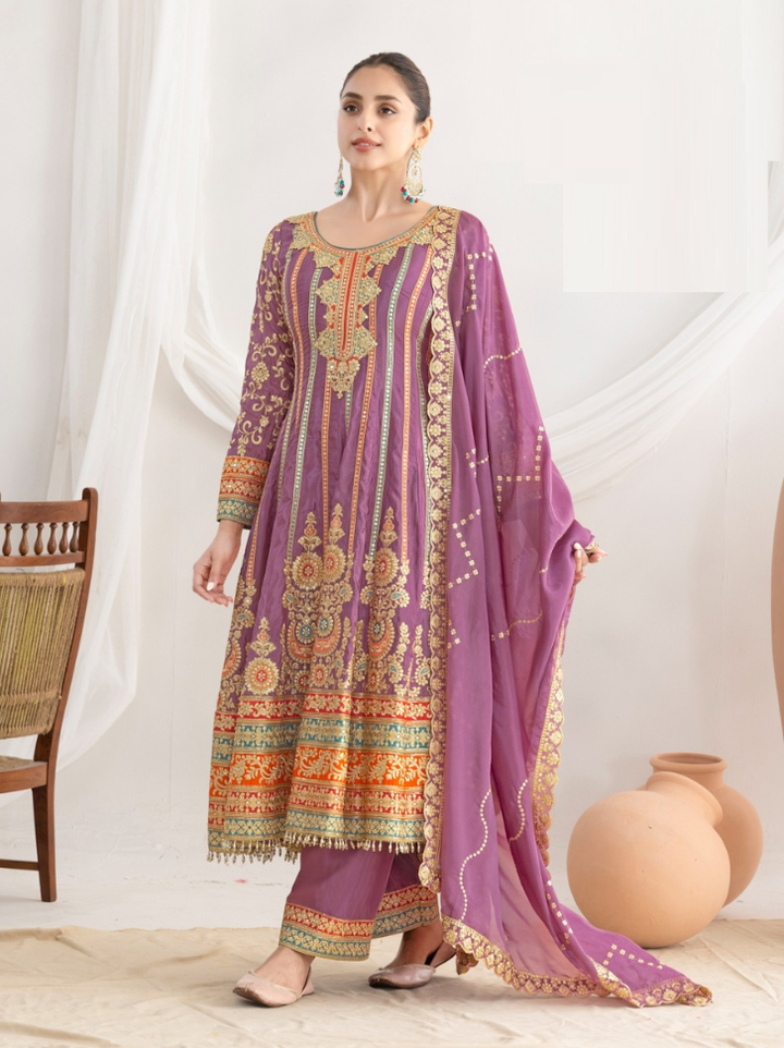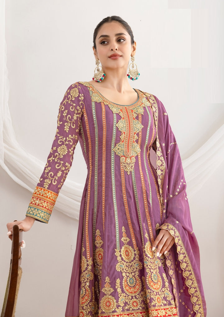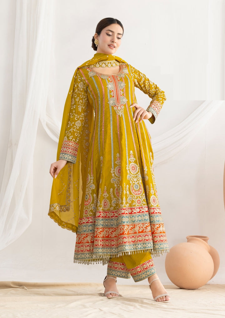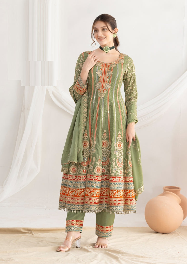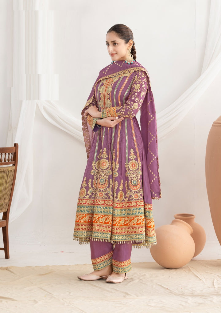 Stepnshop Elegant Silk Anarkali Set with Intricate Hand Embroidery