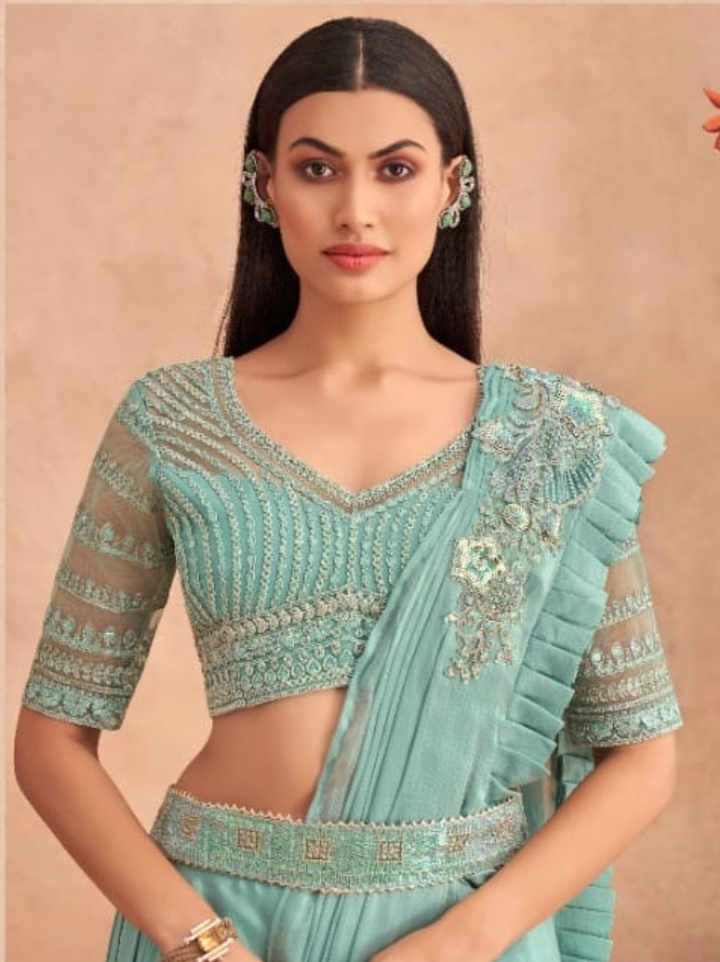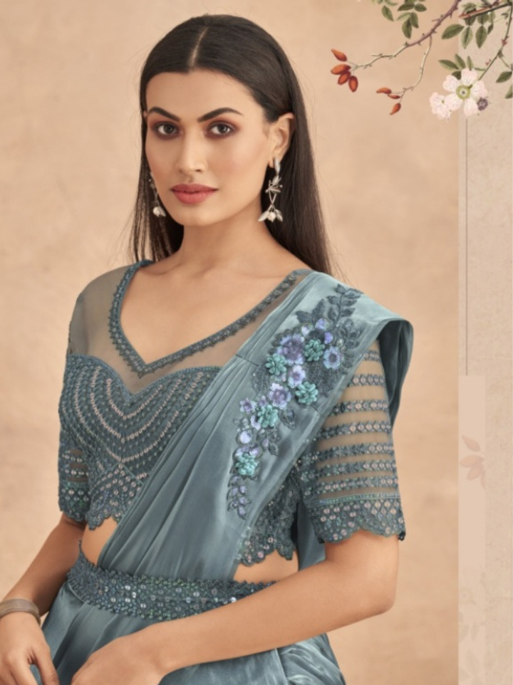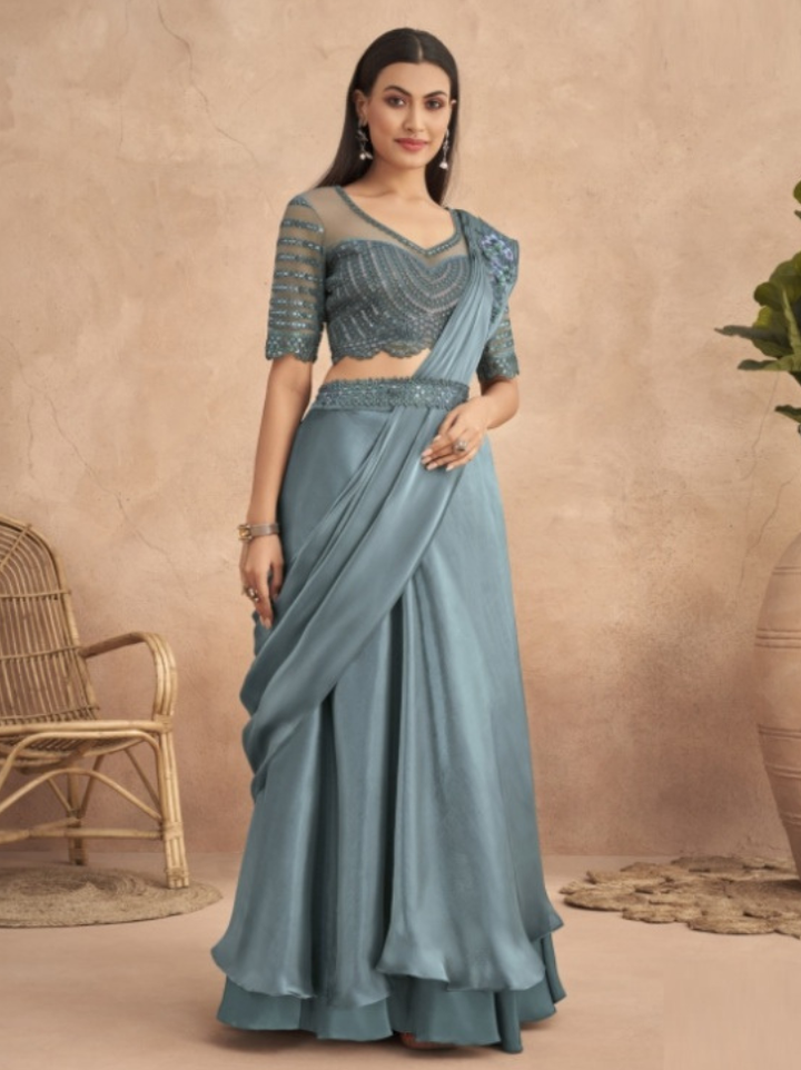 SAREE DETAILS: Imported Satin Silk with Sequin ,Thread Work and Waist Belt | Lenght : 5.5 Meters | Height:44 inches