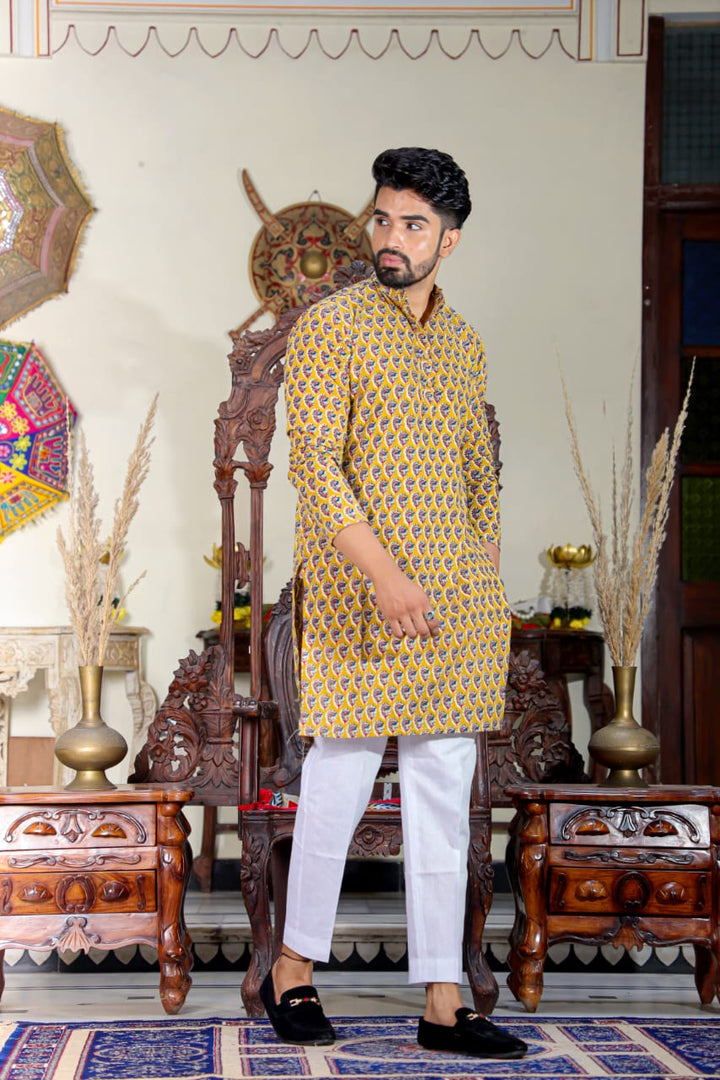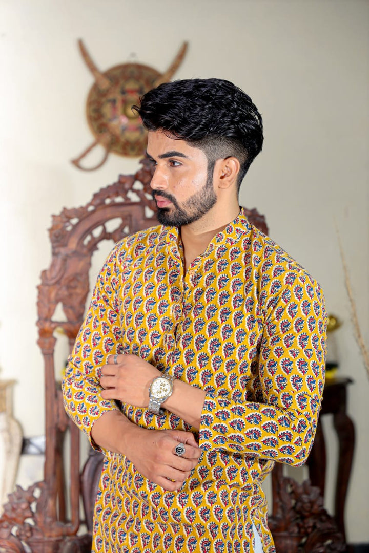 Stepnshop Men’s Wear – Stylish Cotton Printed Kurta with Fancy Pajama