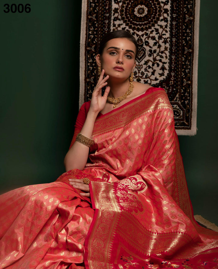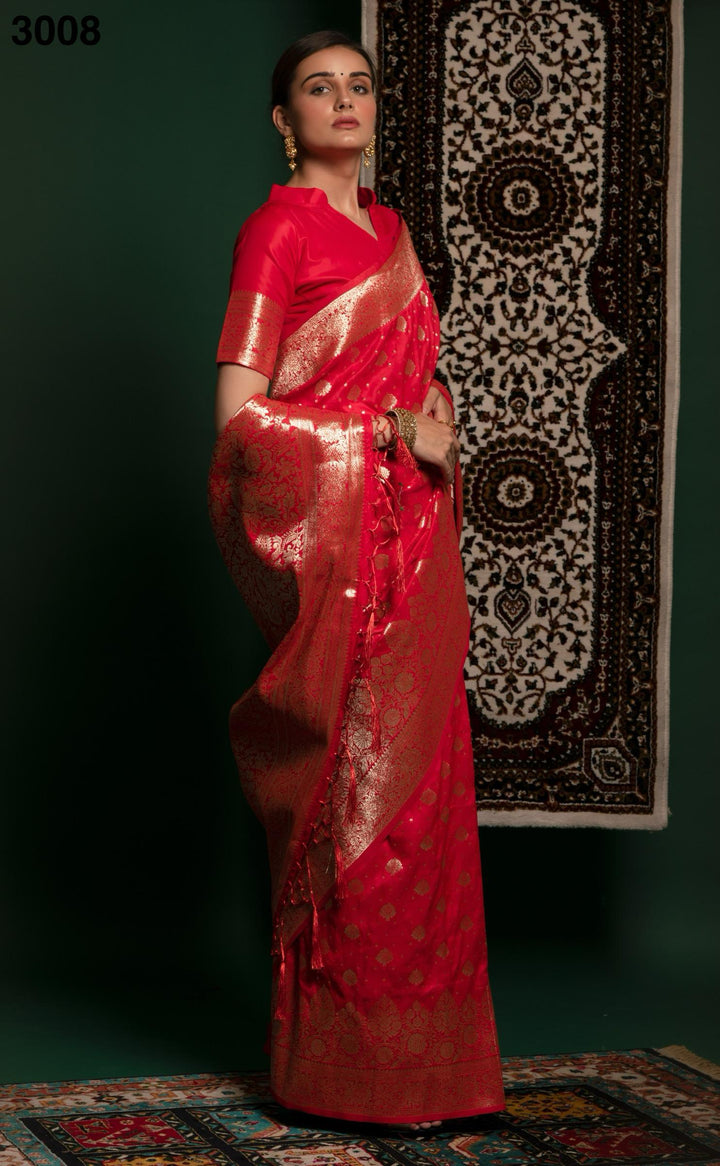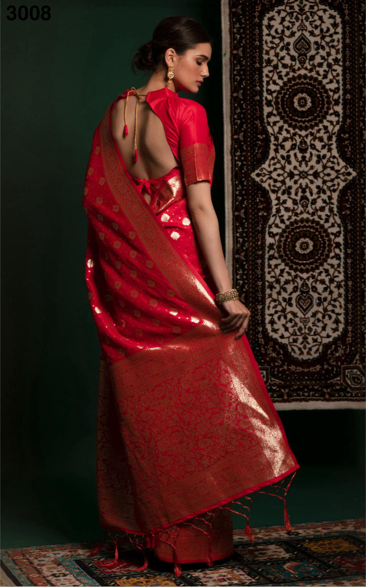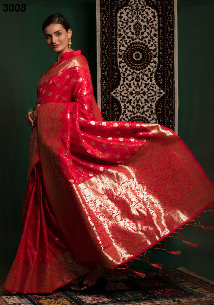 Red Color Designer Banarasi Silk Wedding Saree with Blouse