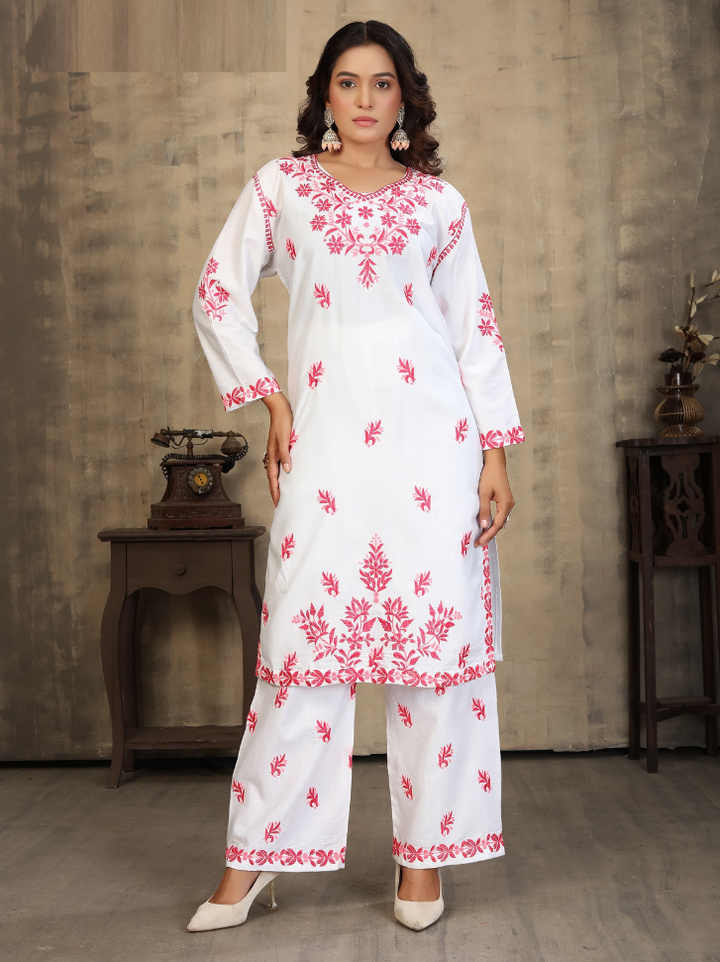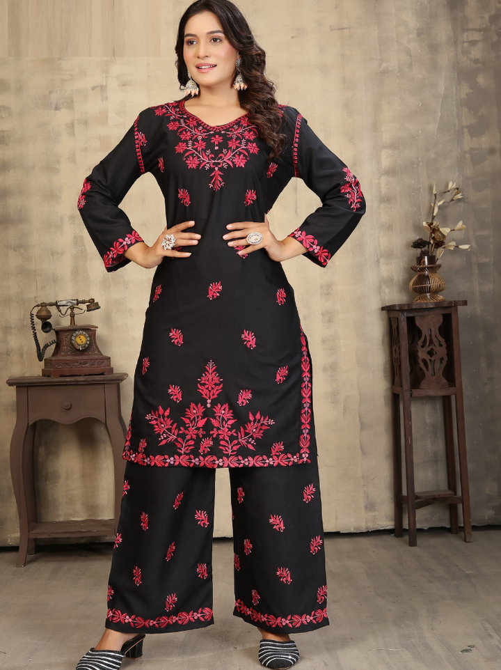 Elevate your everyday and festive wardrobe with this elegant Rayon Kurti Set from Stepnshop. Crafted in soft, comfortable rayon fabric, the outfit features a beautifully designed kameez and matching pants, adorned with delicate Chikankari embroidery, showcasing timeless traditional artistry. Perfect for casual outings, office wear, or festive occasions, this kurti set blends comfort with classic charm.