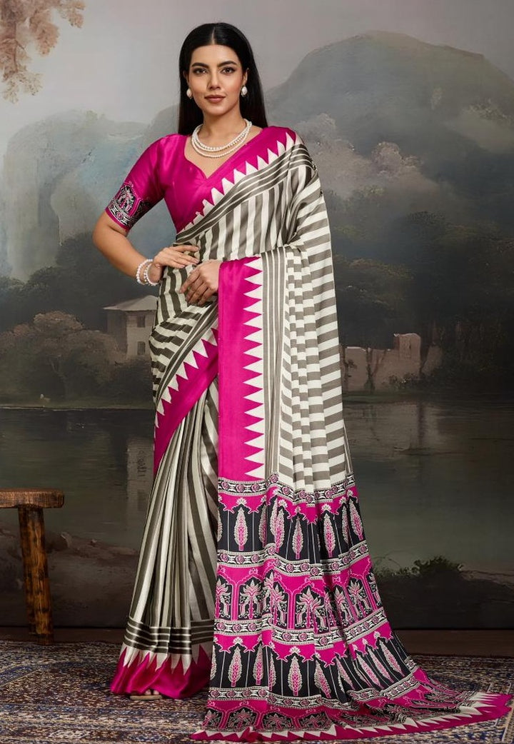 Elevate your look with the Stepnshop Satin Printed Saree Set, crafted from soft satin for a smooth and elegant drape. The stylish printed pattern and matching satin blouse create a chic, effortless look perfect for casual, festive, or office wear. A comfortable, lightweight saree that blends simplicity with modern charm.