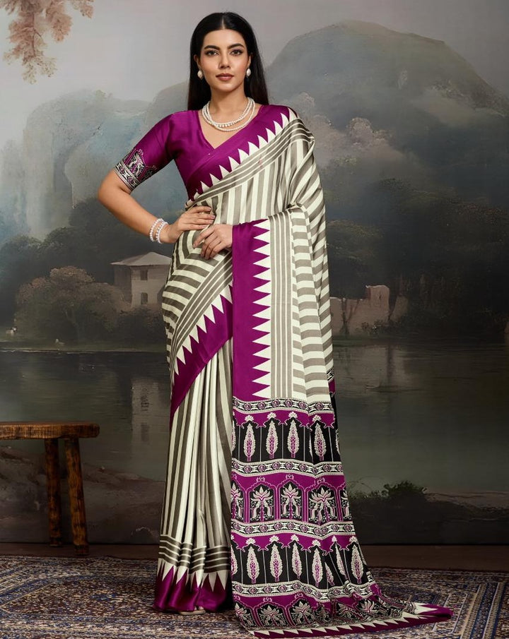 Stepnshop Premium Satin Printed Saree for Women