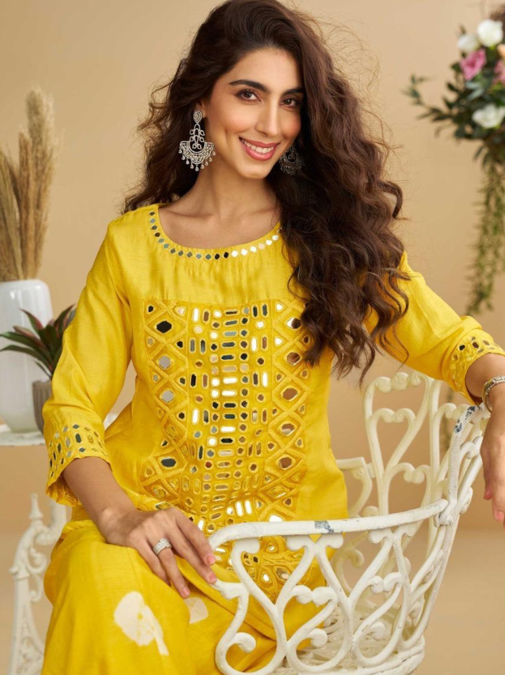Stepnshop Silk Co-Ord Set with Embroidery & Mirror Work