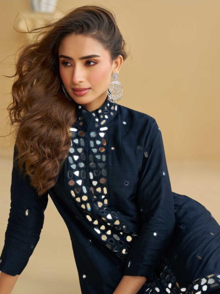 Elevate your style with this chic Silk Co-Ord Set from Stepnshop, perfect for an Indo-Western look. The luxurious silk top and matching bottom feature intricate embroidery and mirror work, adding a touch of glamour to your outfit. Designed for parties, festive occasions, or special gatherings, this co-ord set effortlessly blends modern fashion with traditional elegance, ensuring you stand out with grace and sophistication.