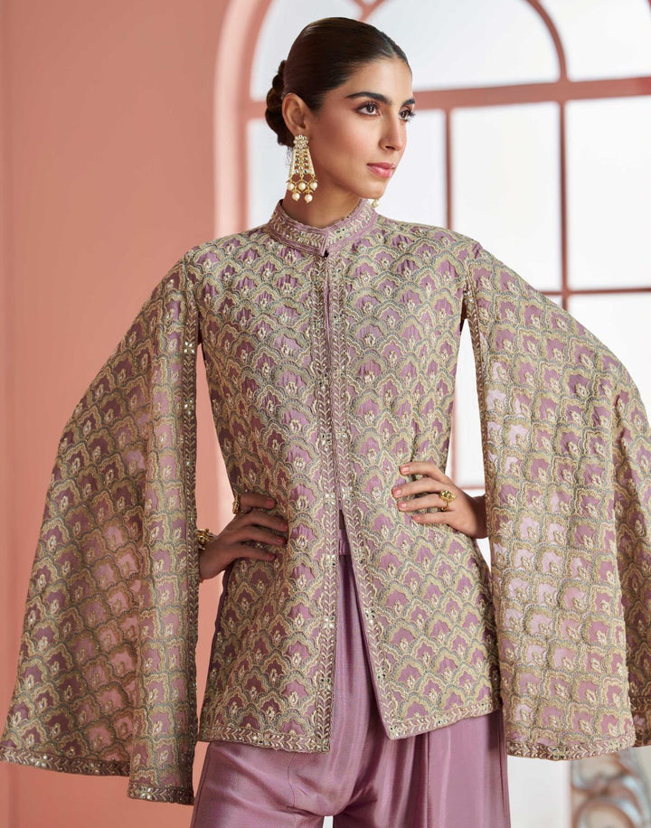 Stepnshop Simar Silk Indo Western Set with Embroidery Work