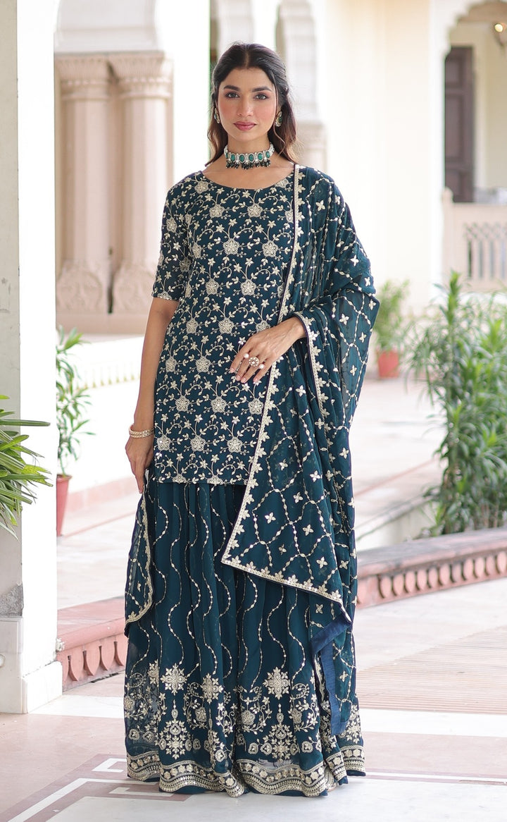 Stepnshop (ST06) Georgette Sharara Suit with Embroidery & Sequin Detailing