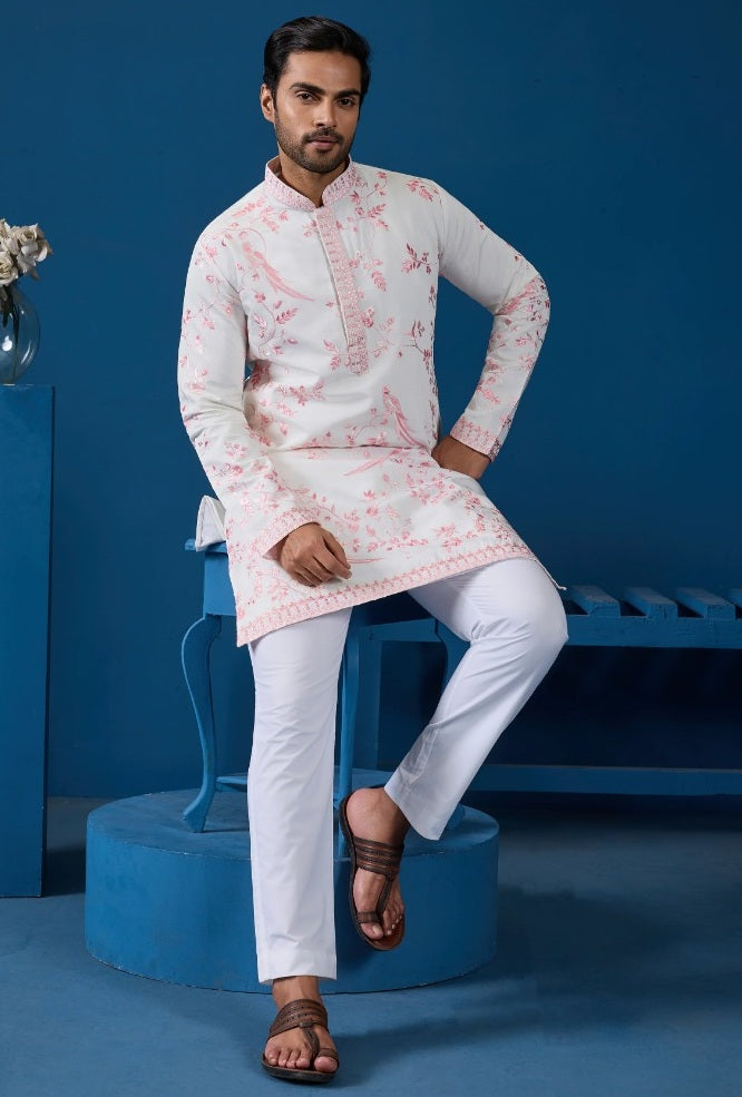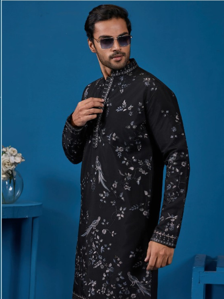 Stepnshop (ST06) Viscose Silk Men’s Kurta Pajama with Embroidery Work