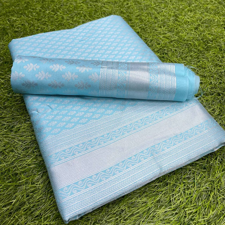 Stepnshop presents this elegant Soft Silk Lichi Silk Saree, crafted with rich Jacquard weaving work that adds a luxurious sheen and timeless charm. Paired with a matching Lichi Silk blouse, this saree offers a perfect blend of traditional artistry and contemporary elegance. Ideal for weddings, festive occasions, and special celebrations, this piece showcases premium craftsmanship and a regal drape that enhances your look effortlessly.